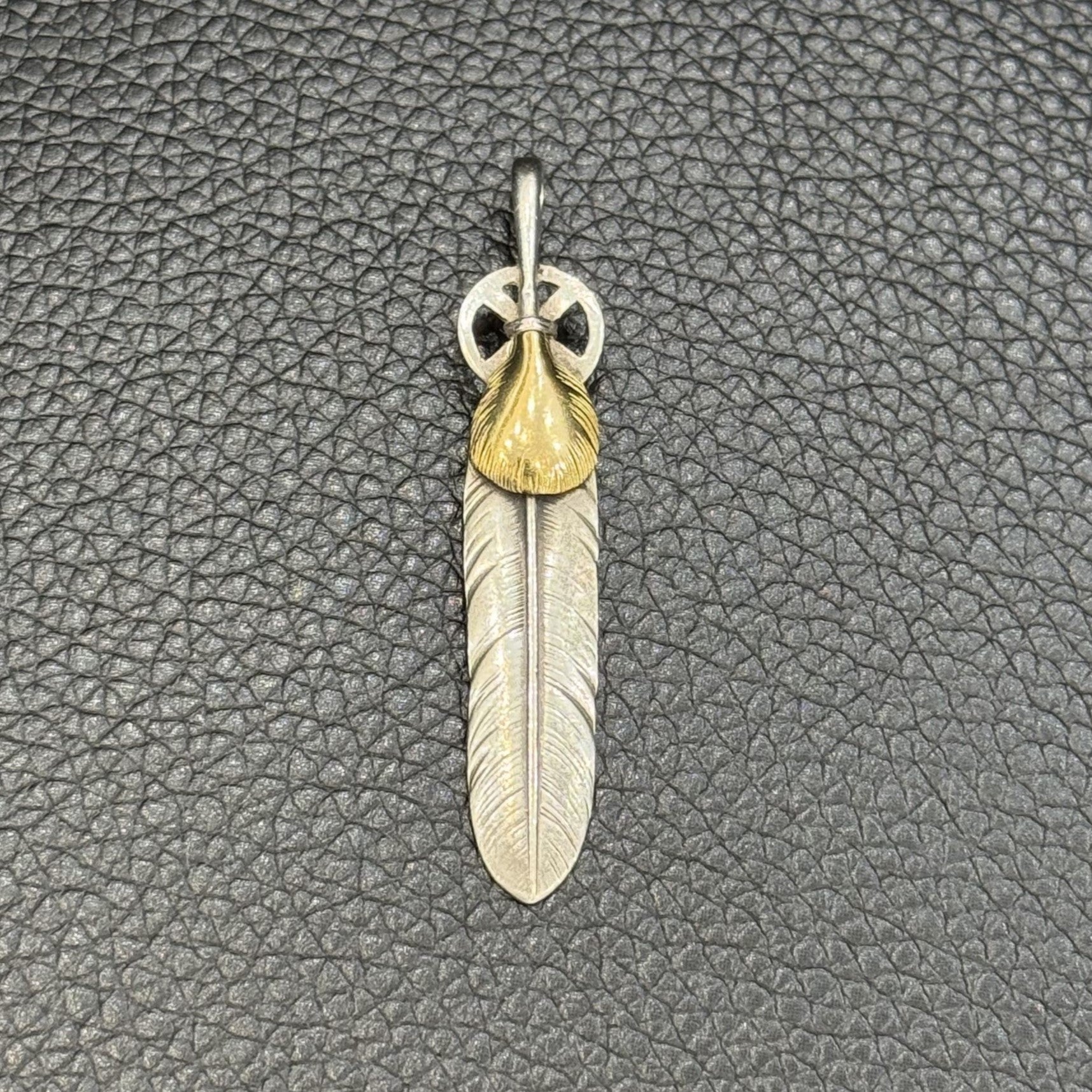 Some types of goro’s Feather pendants exist, such as Feather Pendant (XL), which is inspired by the left and right wings, the Heart Pendant, which is inspired by the breast feathers of an eagle, and the Feather Pendants inspired by the tail feathers.